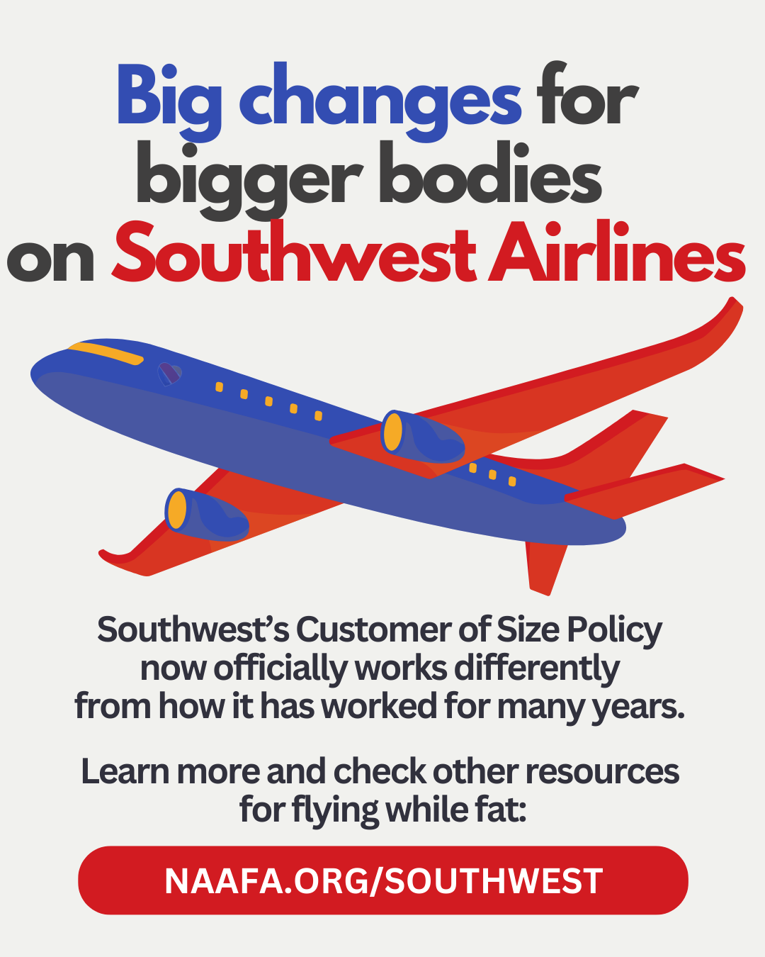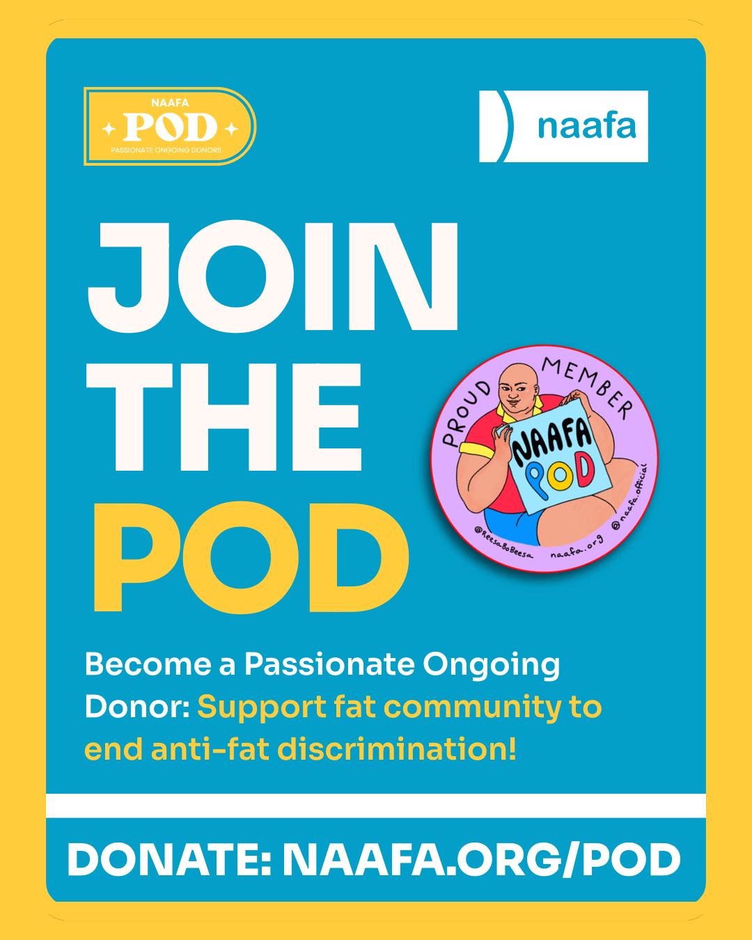 At least one-third of the world’s population is fat, yet fat people are discriminated against in all aspects of daily life. For over 50 years, NAAFA has worked to make the world a better place for fat people through education, advocacy, and support. We are a multigenerational, intersectional social justice organization creating opportunity for big bodied people and building community for fat people and our loved ones. Our work towards #EqualityAtEverySize is changing the world!